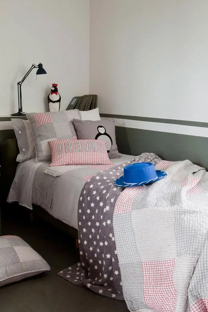 Los cuadros escoceses, las flores y los patchwork se combinan con una paleta de tonos grises, azules y marrones. Textura reivindica así la esencia más acogedora en prendas que bien pueden estar vistiendo casas campestres o pisos de una gran ciudad. Pero sin duda, la clave de la colección es la mezcla de tejidos como los cojines de terciopelo con raso o plaids hechos en punto y lana.
